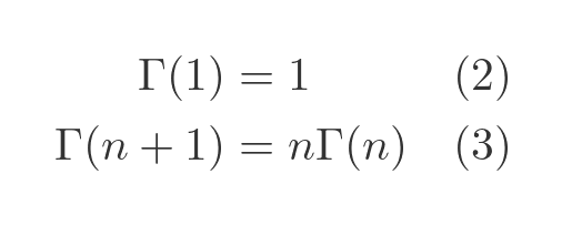 This follows from the equivalent formula for factorials, equation (1) above. It turns out that this formula above doesn't only apply to integers, it applies to all values of x: